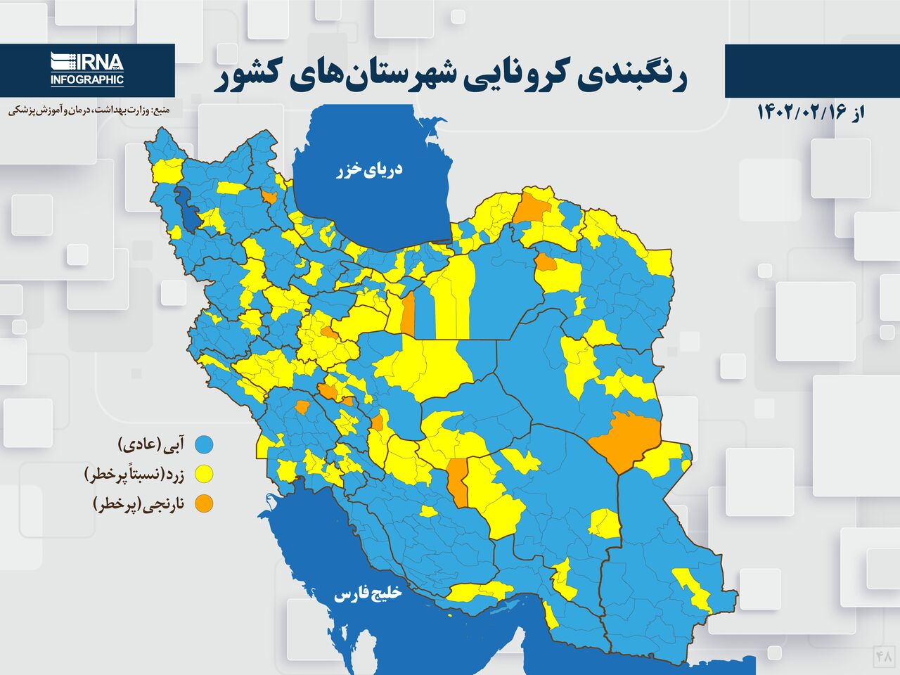 بر اساس تازه‌ترین رنگ‌بندی کرونایی اعلام شده از سوی وزارت بهداشت؛